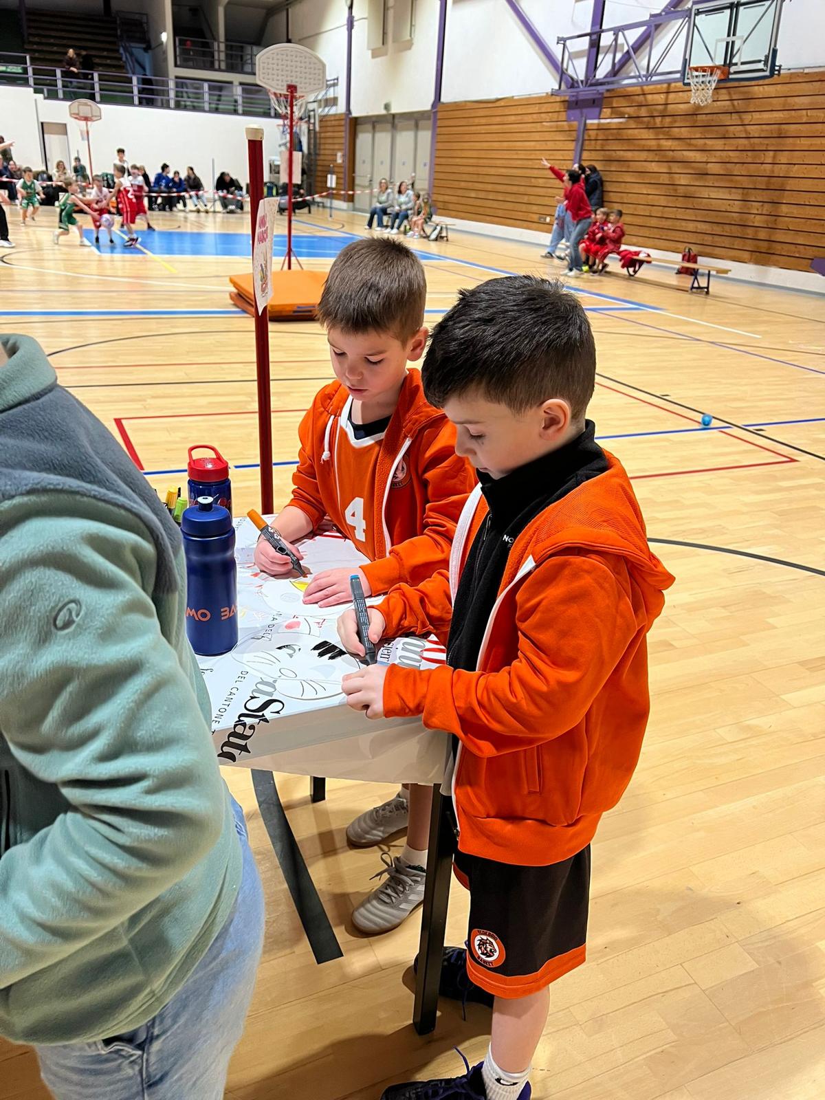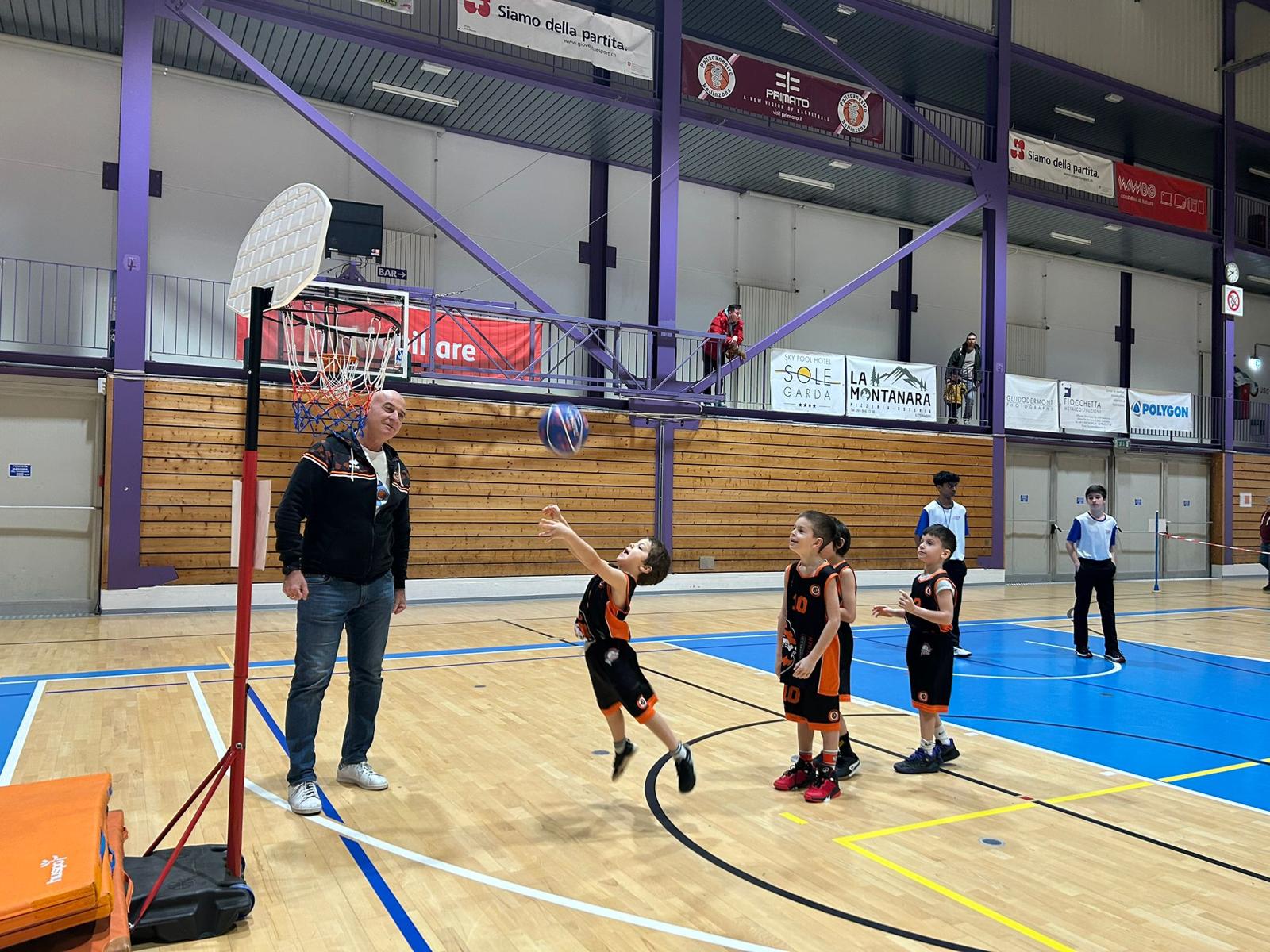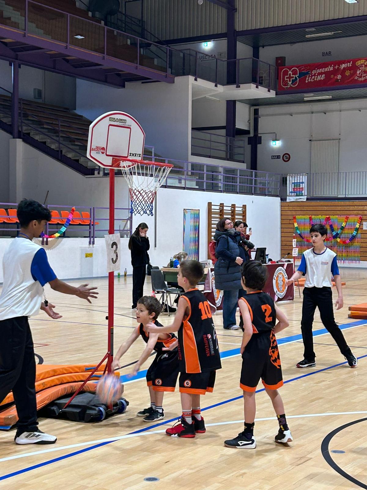 Due le squadre del Basket Club Vedeggio: i Leoncini Orange e i Leoncini Black. Capitanati da Greta e Stefano, le due squadre si sono viste destreggiare tra i campi di gioco appositamente allestiti sul grande campo centrale.